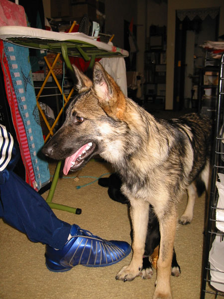 Baby is a female mostly malamute and shepherd -- a wolf-dog rather than a hound-dog.