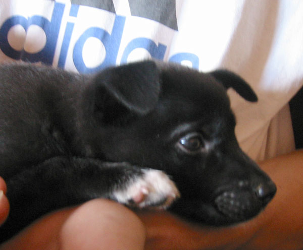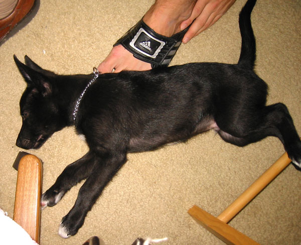 Buddy napping at Geoff's feet the next day. Lots of growth in a month! |