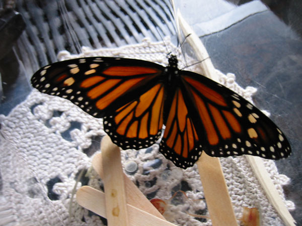 August 19, 2004 - Female monarch butterfly newly emerged from chrysalis