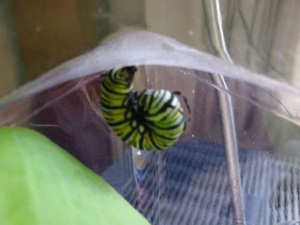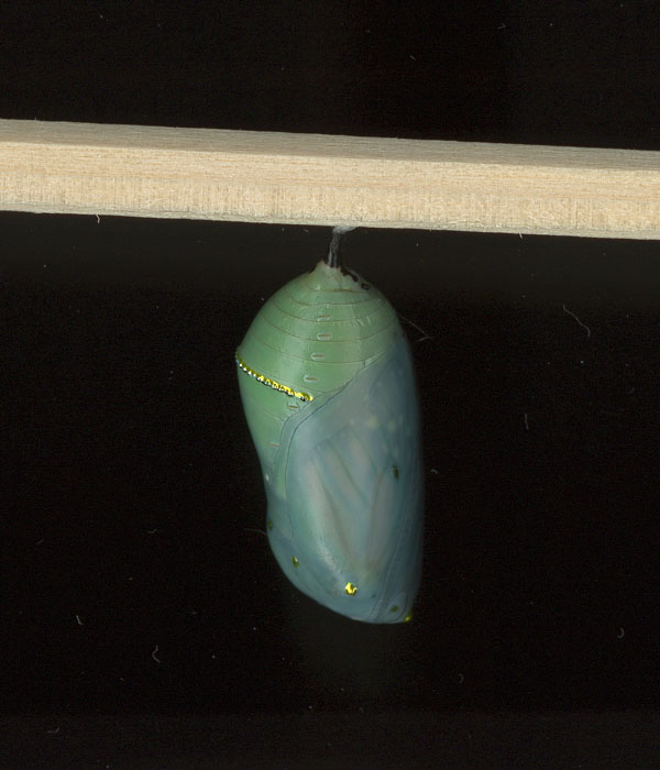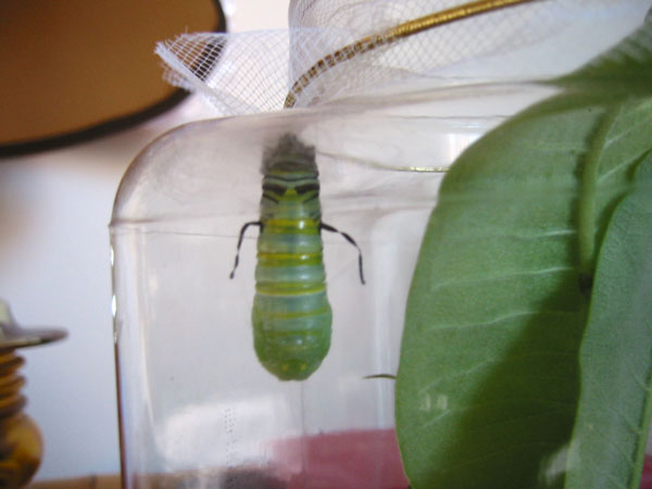 September 10, 2004 - the chrysalis of the smaller caterpillar is starting to darken. |